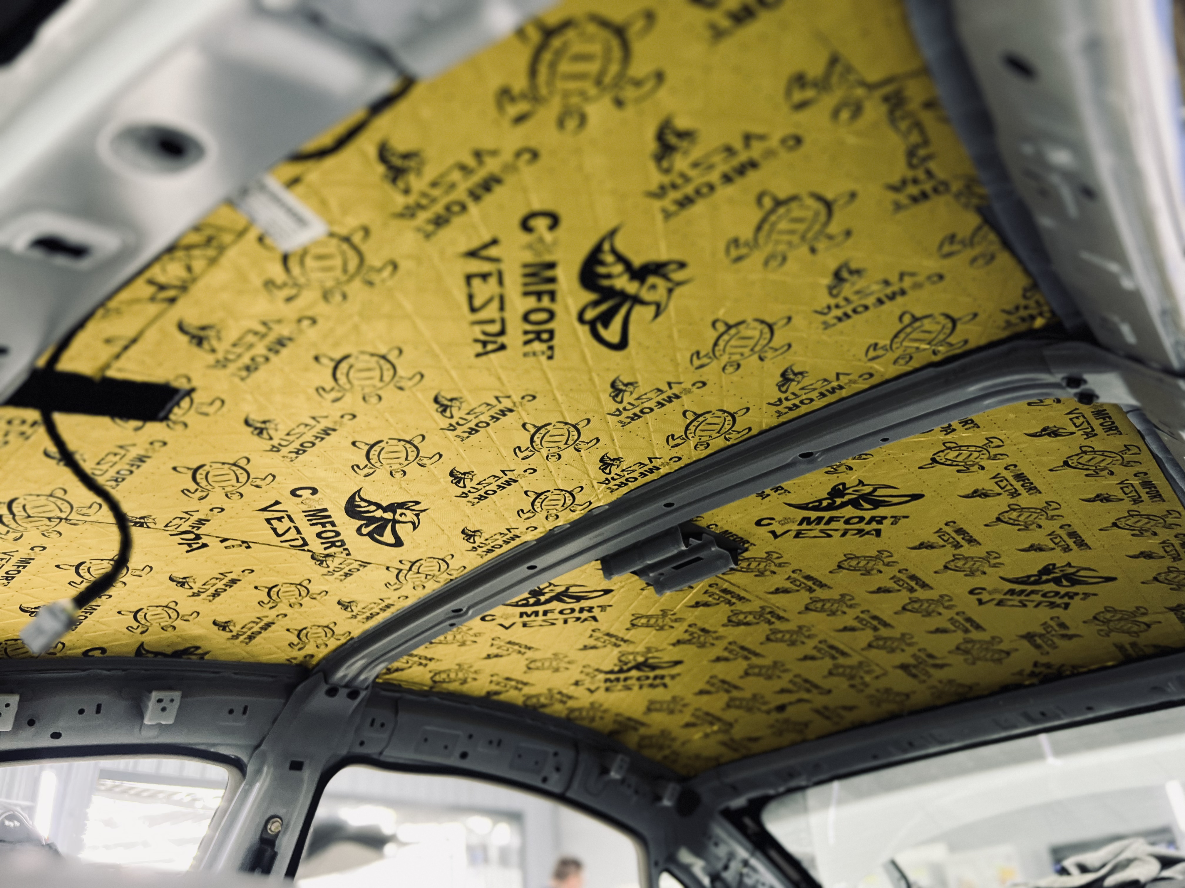 Крыша автомобиля часто пропускает шум ветра и дождя. Мы обработали ее в два слоя, чтобы обеспечить тишину в салоне даже в непогоду.
