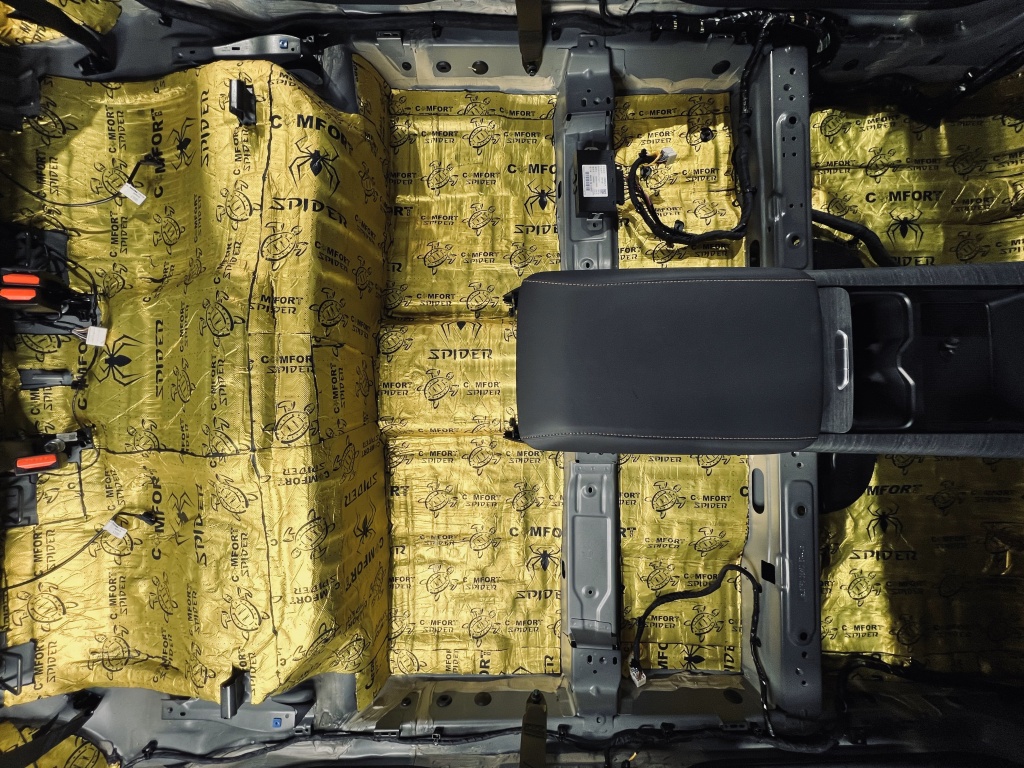 Пол салона – главный источник шума от дороги и колес. Мы использовали многослойную изоляцию, чтобы сделать салон максимально тихим.