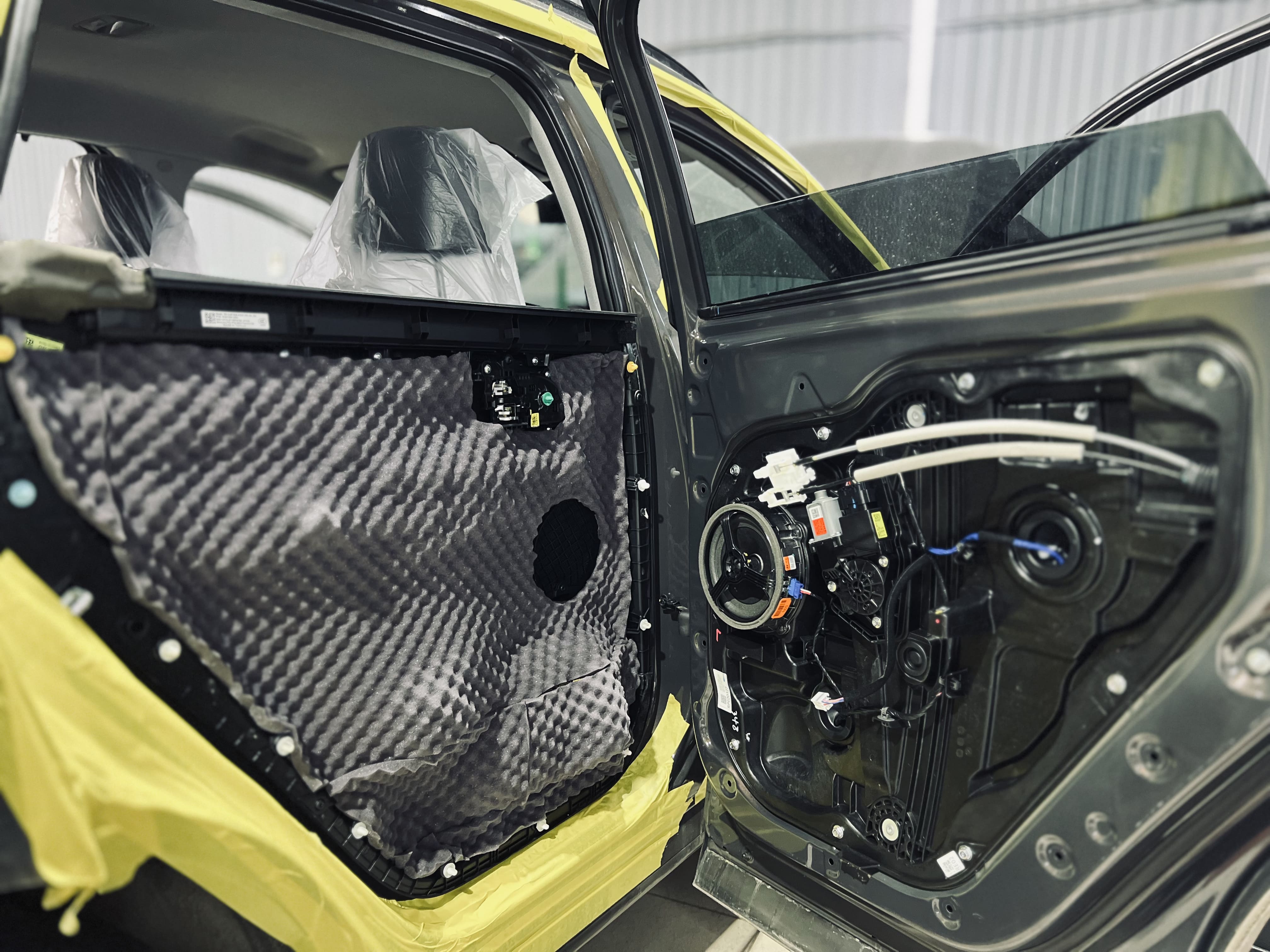Двери и дверь багажника – важные элементы шумоизоляции, через которые проникают звуки улицы и ветра. Мы обработали их в несколько слоев, чтобы обеспечить тишину и улучшить акустику.