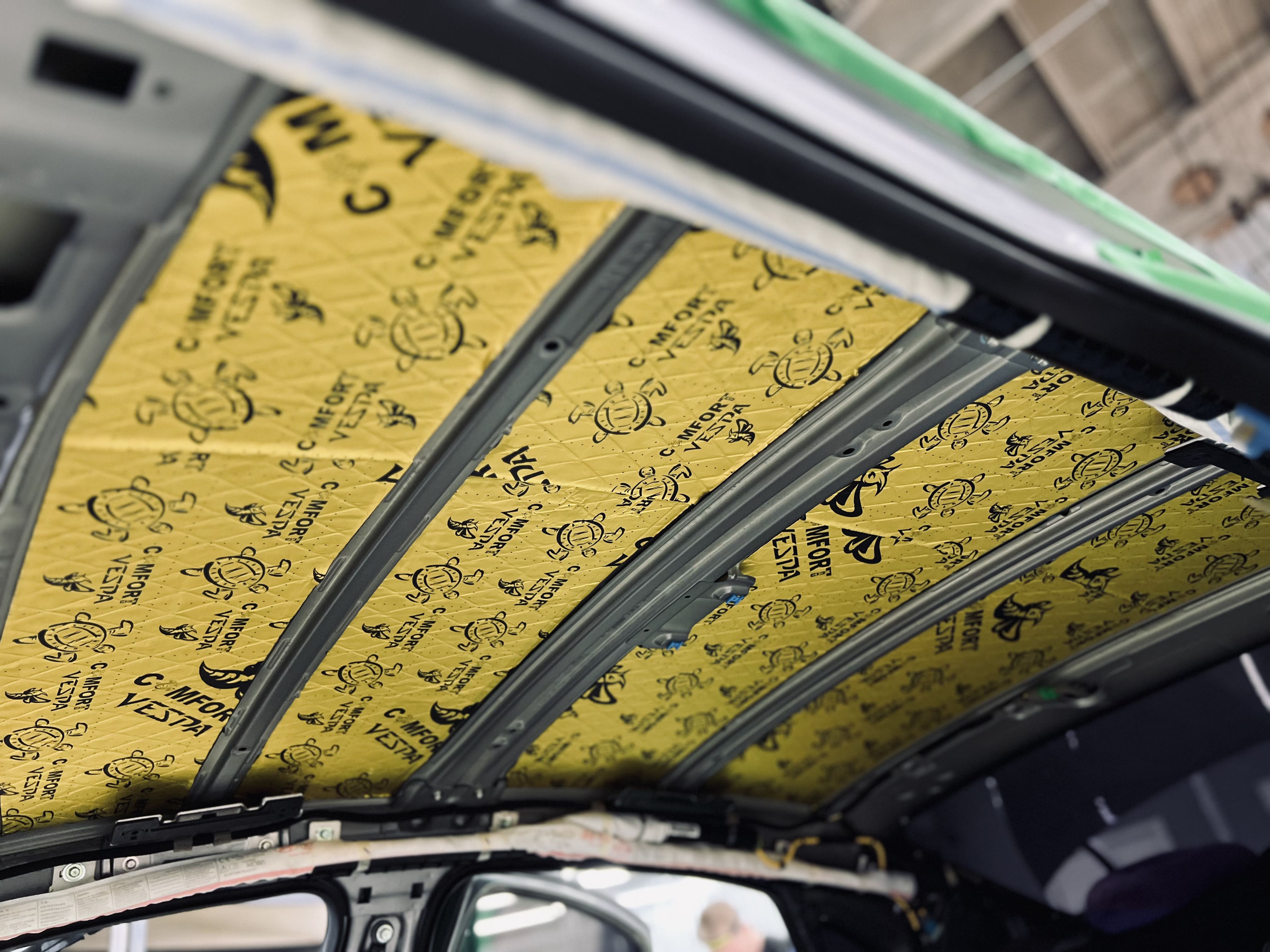 Крыша автомобиля часто пропускает шум ветра и дождя. Мы обработали ее в два слоя, чтобы обеспечить тишину в салоне даже в непогоду.