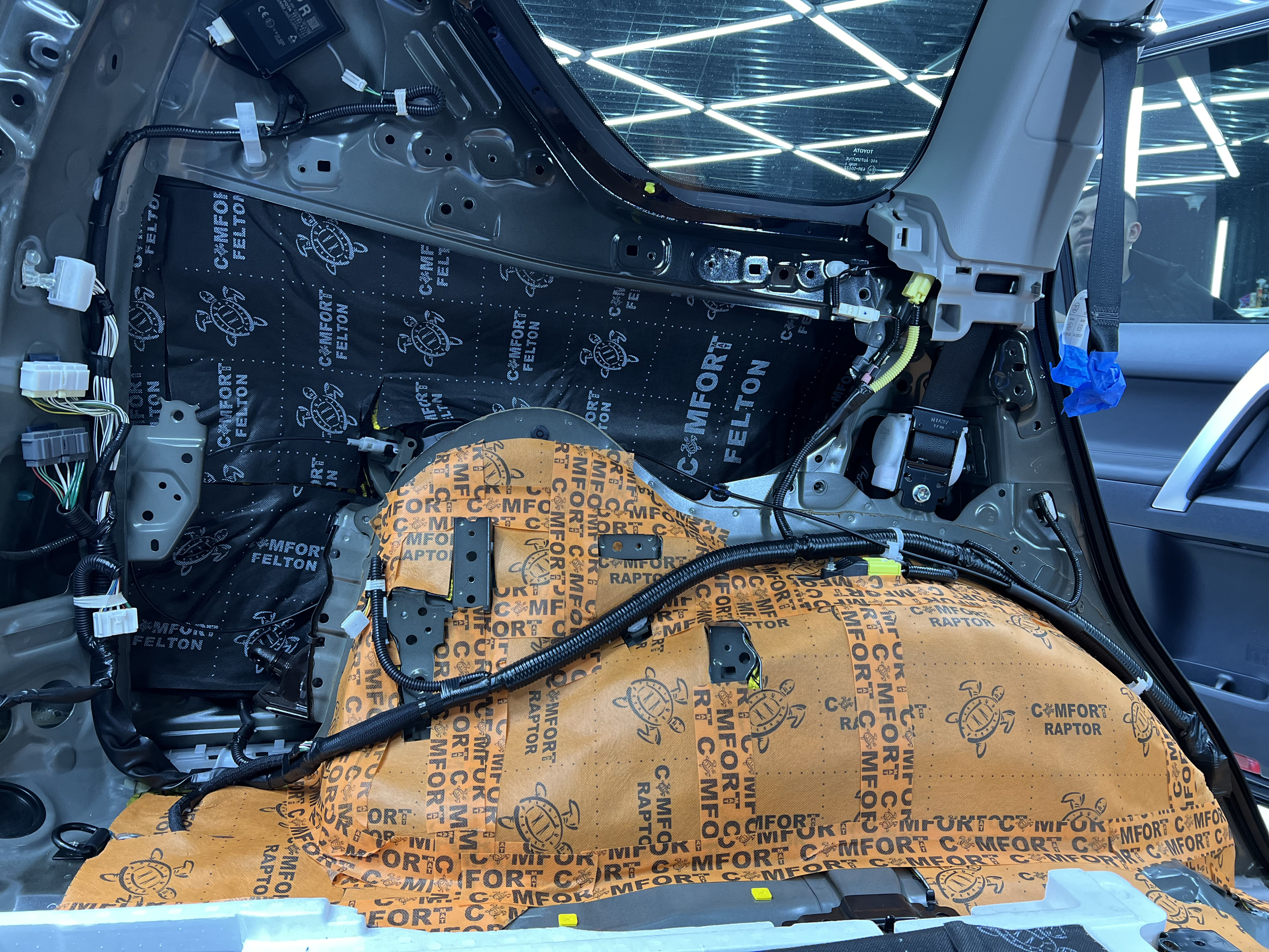 Полная шумоизоляция Toyota Land Cruiser Prado преобразила автомобиль. Уровень шума от дороги, колес, ветра и дождя значительно снизился, а звучание штатной акустики стало глубже и чище. Поездки, будь то по трассе или бездорожью, теперь приносят больше удовольствия.