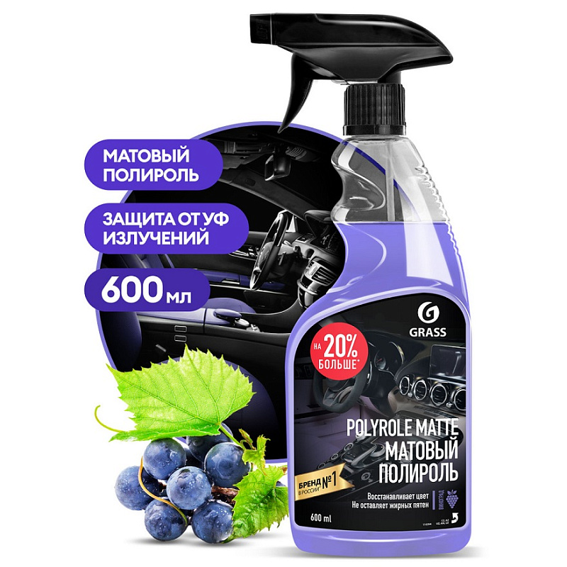 Полироль-очиститель пластика матовый Grass "Polyrole Matte" виноград (600 мл.)
